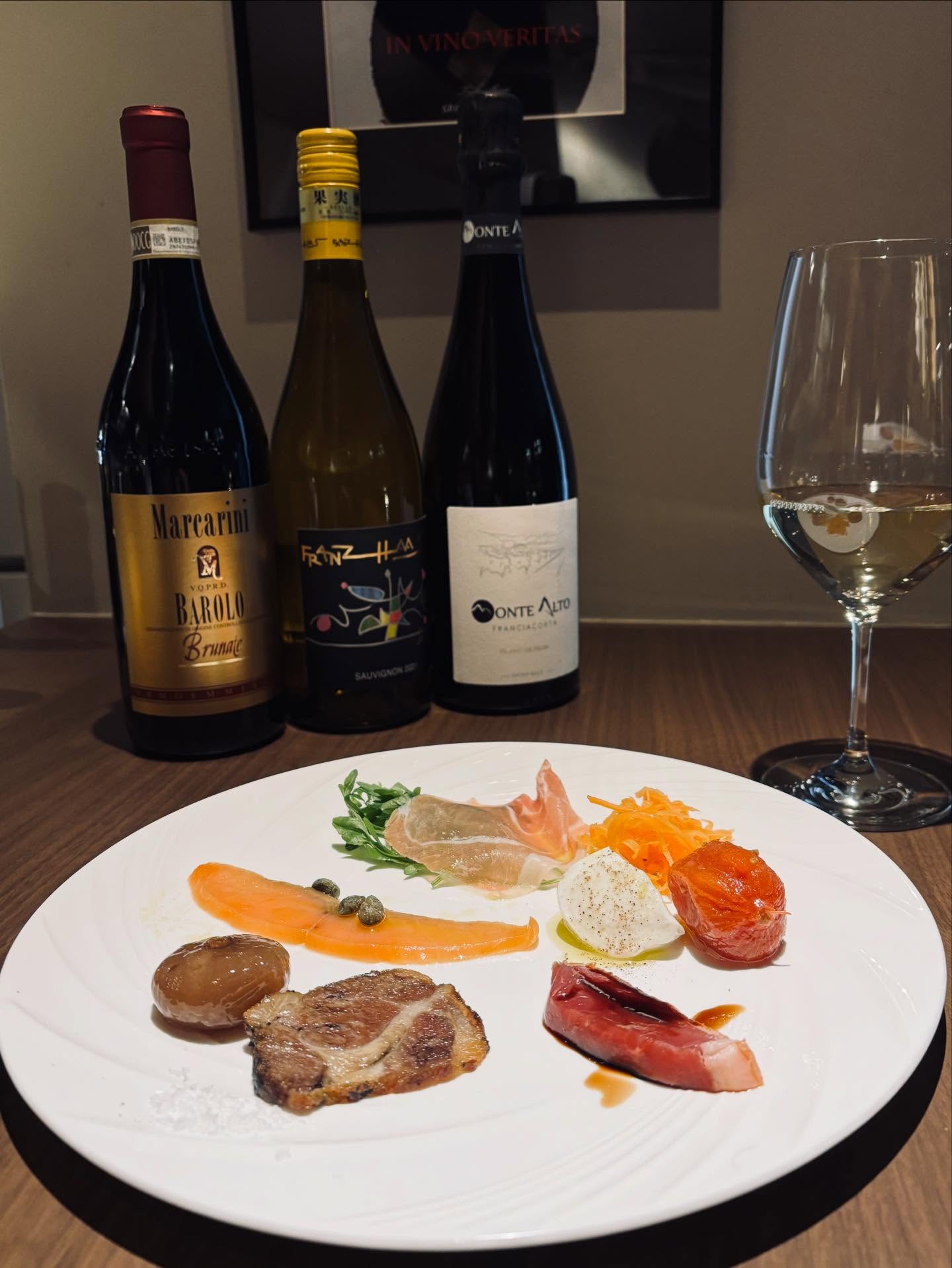 ハレの場に相応しいスペシャルなイタリアワイン3種(泡、白、赤)と軽めのお料理の盛り合わせ